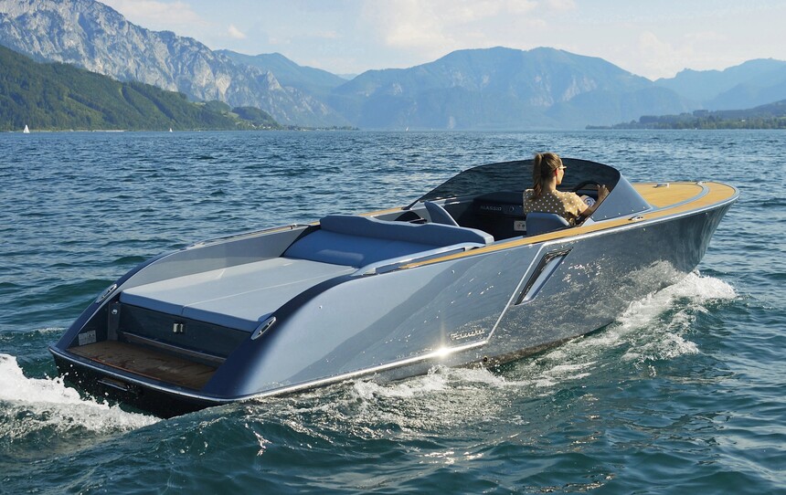 Mit mehr als 200 verkauften Exemplaren gilt die 650 Alassio als eines des meistverkauften Elektroboote der Welt. Die Kunden schätzen den hochwertigen Bootsbau aus Österreich und lieben das neomoderne, typische Frauscher-Design. Das ist schnörkellos mit seinen klaren Linien, aber keineswegs eckig, sondern schnittig. Die Motorisierung reicht vom ganz gemütlichen Daycruiser mit 4,3 kW über eine 11-kW-Variante, mit das Boot auf 15-16 km/h kommt und das stärkste 50-kW-Aggregat, das die Alassio doppelt so schnell macht. Beschränkt sich die bis zu sechsköpfige Crew auf eine Marschfahrt (10 km/h) beträgt die Reichweite je nach Batteriesatz bis zu 90 Kilometer. Weiß ist die Standardfarbe für Rumpf, Deck und Kunstlederpolster, wogegen sich Cockpitboden, Decksbelag und Badeplattform aus Teakholz schmuck absetzen. Mit allerlei Extras von der Biminiverlängerung für die Liegefläche über eine Kühlschublade unter der Sitzbank bis zur Ambientebeleuchtung auch für die seitlichen Teak-Schwalbennester erfüllt die 650 einen Tagtraum.