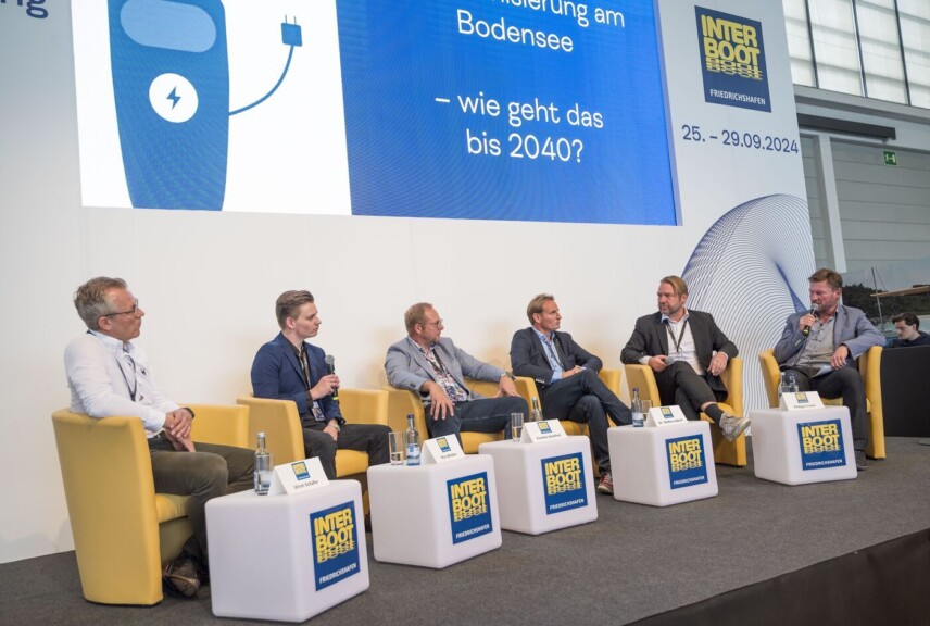 Friedrichshafen – „Dekarbonisierung am Bodensee – wie ist das bis zum Jahr 2040 möglich?“: Dieser Frage ging eine kurzweilige Podiumsdiskussion zum Start der internationalen Wassersport-Ausstellung Interboot nach. Gesprächspartner aus Politik, Wirtschaft und Wassersport beleuchteten aus unterschiedlichen Blickwinkeln die Chancen und Hürden der kommenden 16 Jahre, waren sich jedoch alle prinzipiell einig: Das Klimaziel ist erreichbar und sollte mit seinen dafür nötigen Maßnahmen bei allen Beteiligten positiv besetzt werden. Unerlässlich dabei ist der deutliche Ausbau der Ladeinfrastruktur, mittelfristig eine verbesserte Verfügbarkeit des Klimadiesels HVO 100 (Hydrotreated Vegetable Oil) sowie die Einbindung der Wassersportlerinnen und -sportler in die Thematik. Zudem ist die kontinuierliche Weiterentwicklung technischer Innovationen von großer Bedeutung.